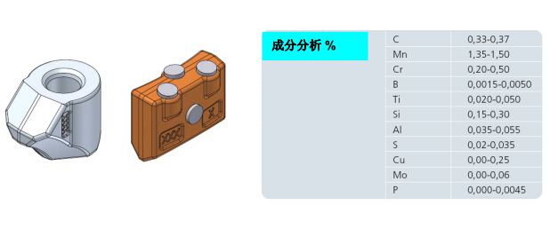 截齒座及齒靴材質(zhì)是微合金熱處理鋼34MnCrB4+TiB650。
